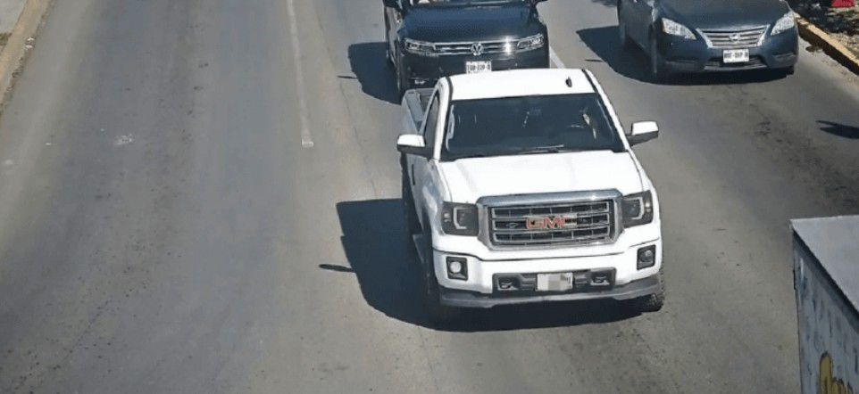 - Vehículo: Camioneta pickup blanca.