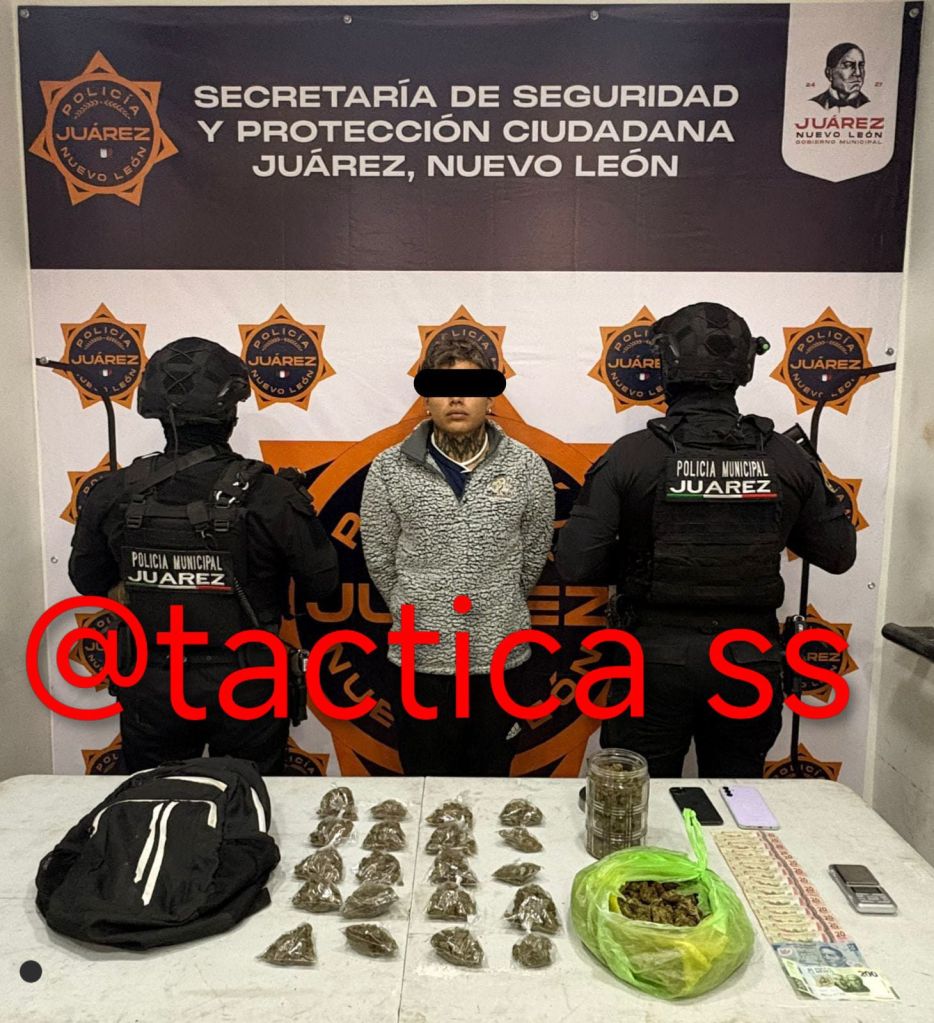 El detenido fue puesto a disposición del Ministerio Público. La autoridad municipal hace un reconocimiento y felicita especialmente a los policías de Investigaciones del municipio de Juárez, N.L., por su eficiencia, compromiso y labor constante en la lucha contra el narcotráfico y en la captura de generadores de violencia, así como por su atención minuciosa en cada operativo que contribuye a mantener la seguridad de la comunidad.
