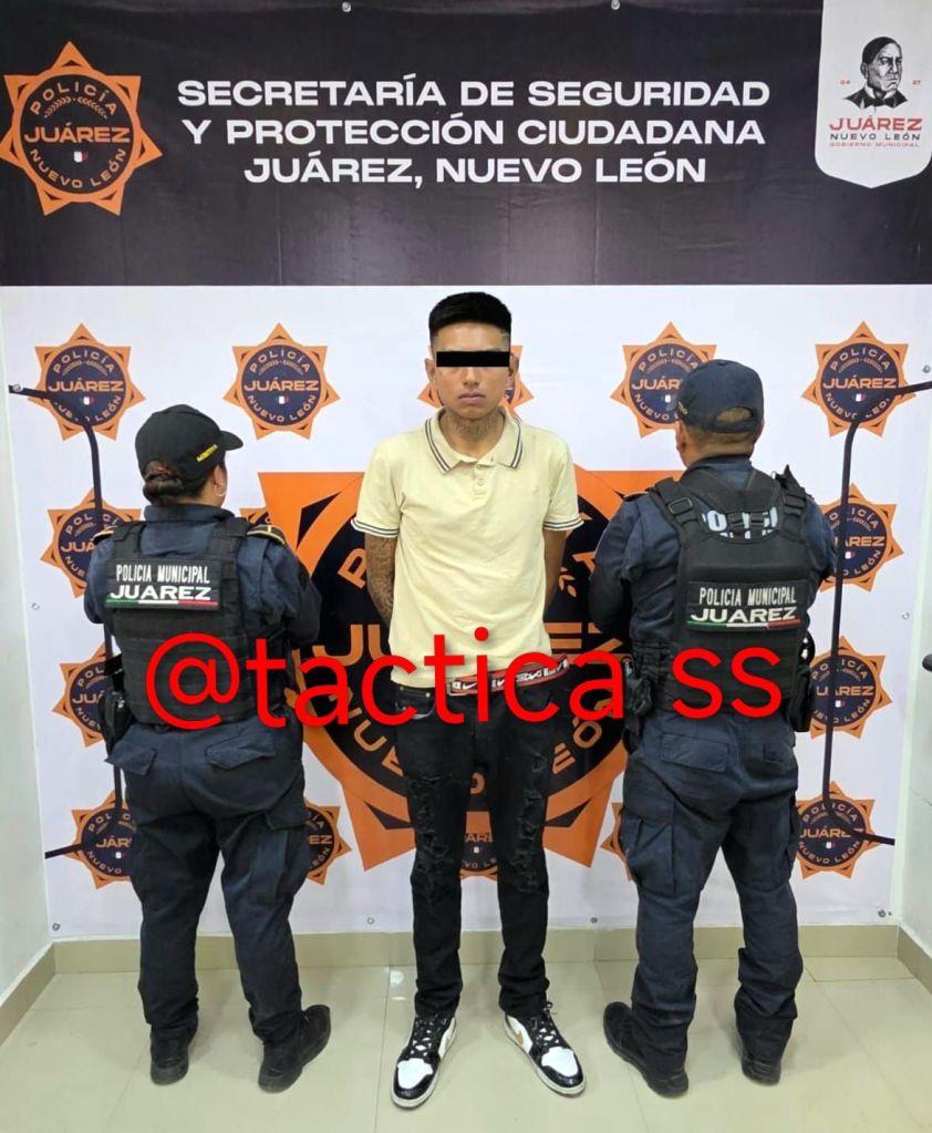 JUÁREZ, N.L.– Durante recorridos de prevención y vigilancia del Operativo Calles en Orden, elementos de la Secretaría de Seguridad y Protección Ciudadana de Juárez detuvieron a un joven en posesión de droga, en la colonia Monte Bello.