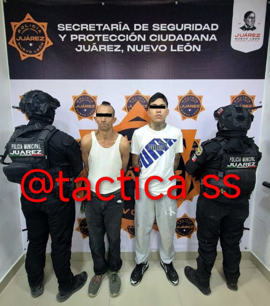 JUÁREZ, N.L.– Como parte de los recorridos de prevención y vigilancia del Operativo Calles en Orden, elementos de la Secretaría de Seguridad y Protección Ciudadana de Juárez detuvieron a dos hombres en posesión de presunta droga, en la colonia Riberas de la Morena.